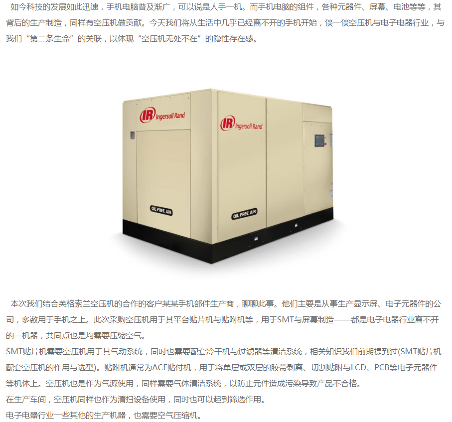 空壓機在手機行業的應用-英格索蘭空壓機